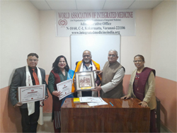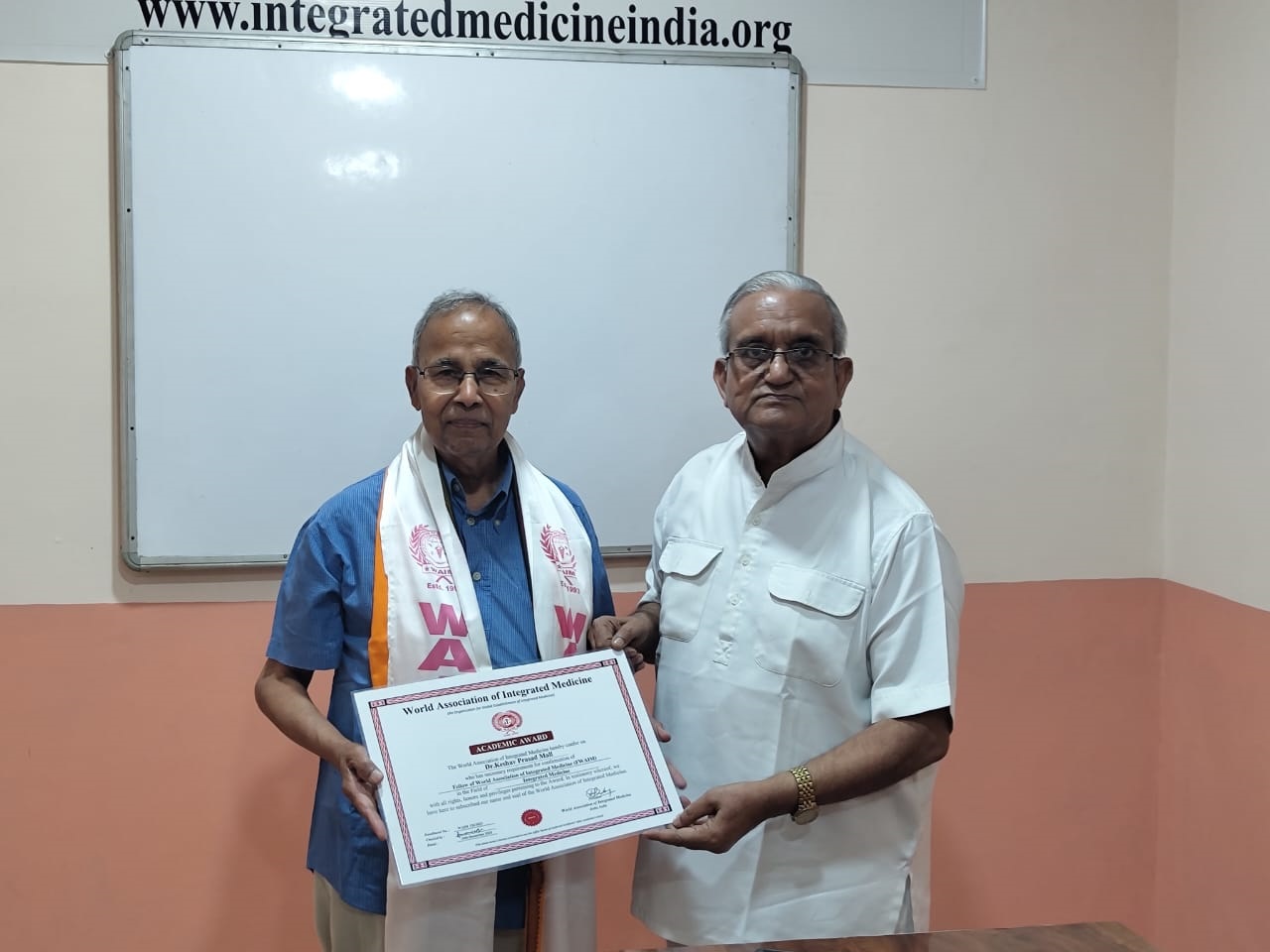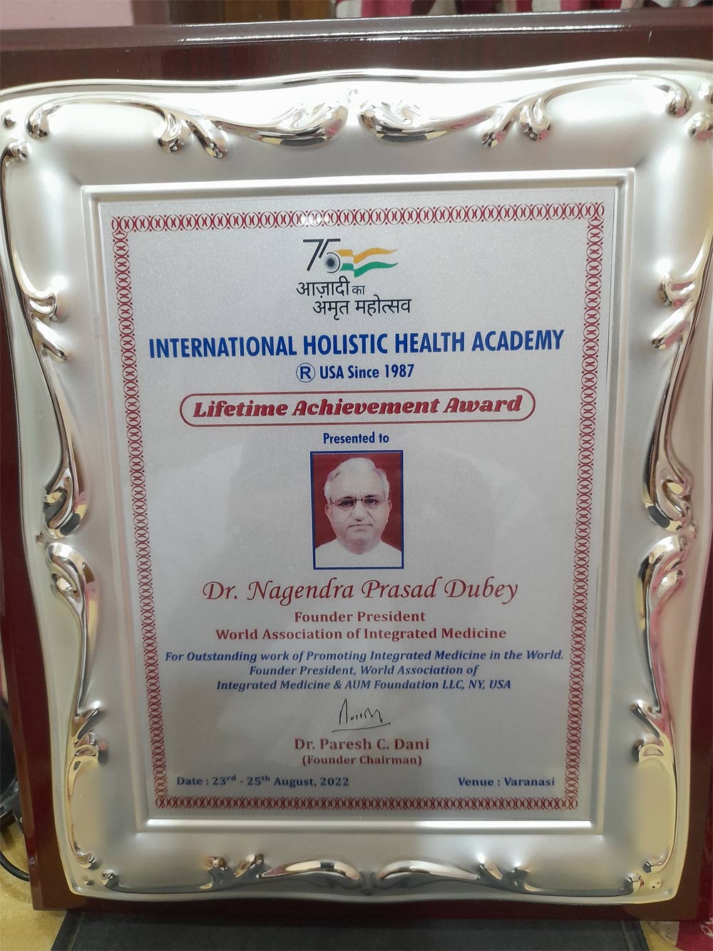 Dr. Nagendra Prasad Dubey, President, World Association of Integrated Medicine (WAIM) received Life time Achievement Award from International Holistic Health Academy, USA. The award was conferred by Dr Paresh C. Dani, Founder President, IHHA at Paradkar Memorial Hall at Varanasi on 25th August 2023. |