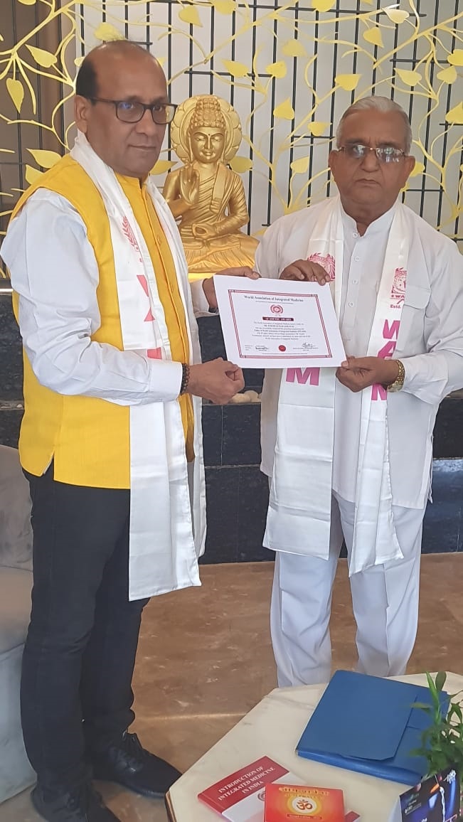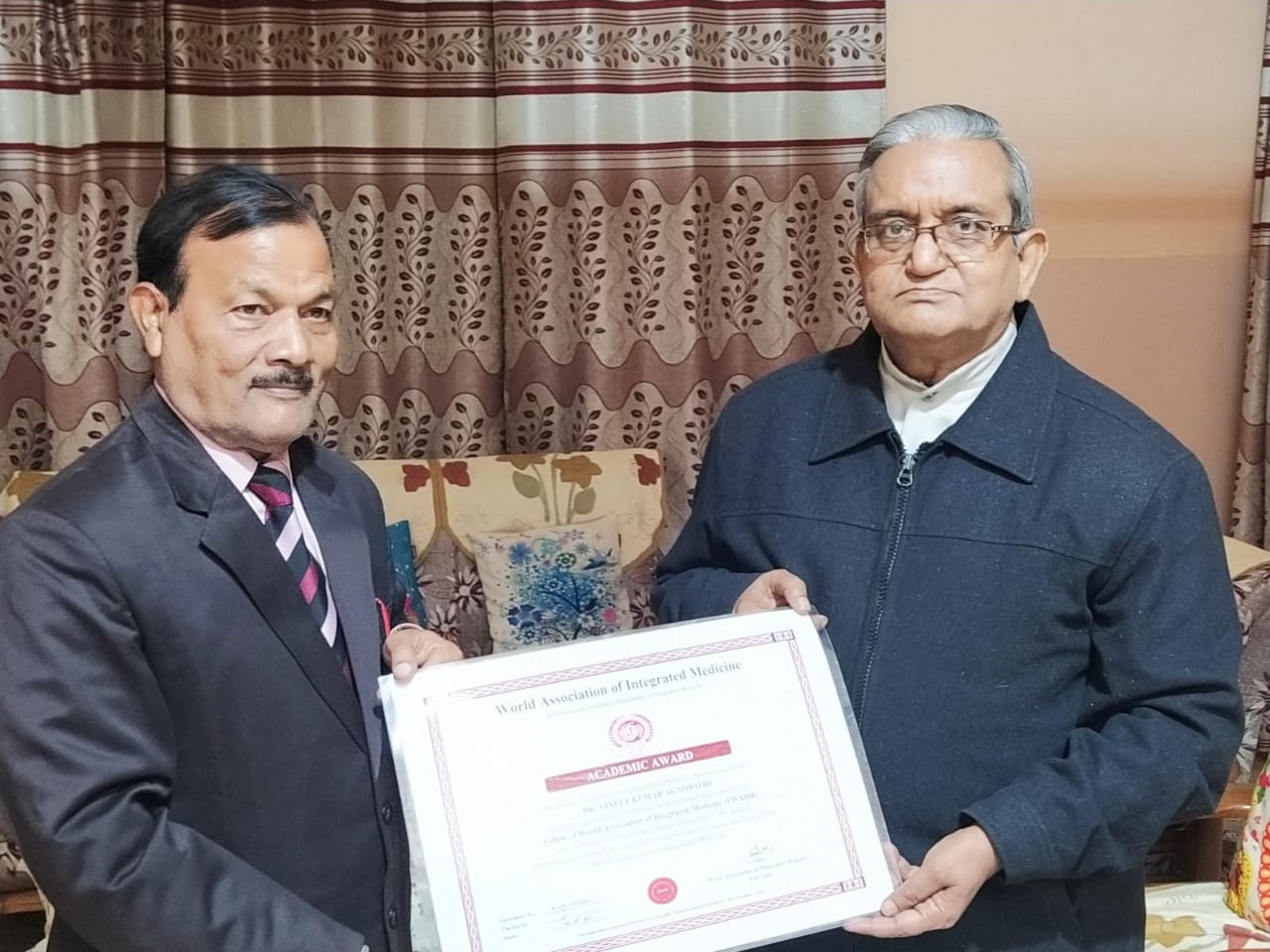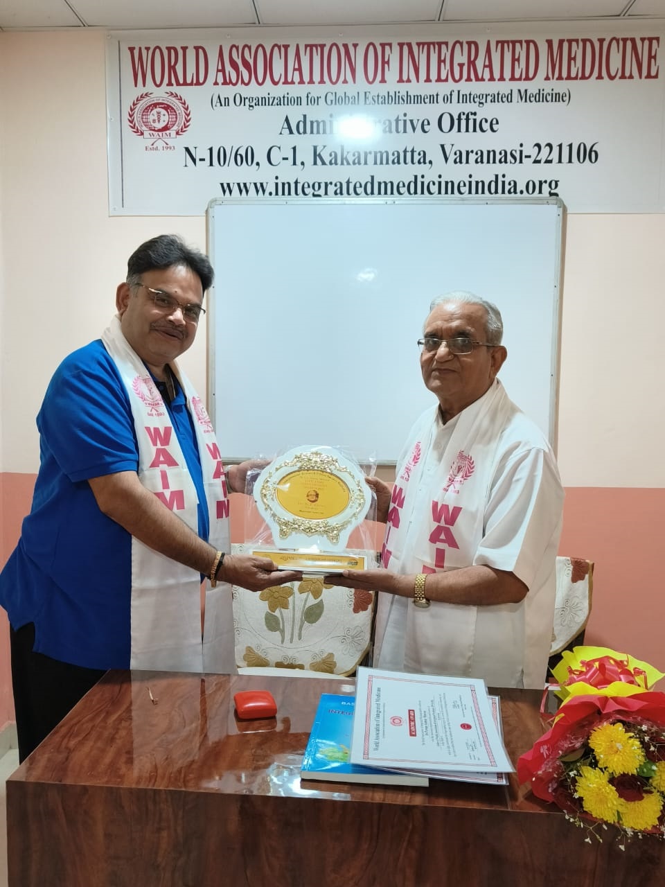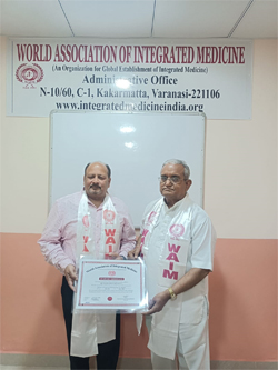 Dr. Keshav Prasad Mall, London, UK was conferred ,Fellow World Association of Integrated Medicine (FWAIM) by Dr. Nagendra Prasad Dubey, President, World Association of Integrated Medicine on 14th November 2023 at Administrative Office of World Association of Integrated Medicine at Varanasi. |