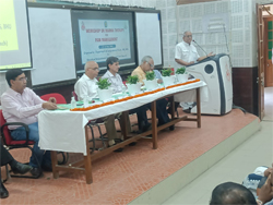 Dr. Nagendra Prasad Dubey, President, World Association of Integrated Medicine is presenting on introducing “Integrated Medicine in India” during inauguration of Workshop on Marma Therapy held on 11th to 13th September 2023 at Faculty of Ayurveda, Institute of Medical Sciences, Banaras Hindu University , Varanasi. Dignitary sitting on Dias are: L – R Prof K K Pandey, Prof. V K Shukla, Prof. S K Joshi and Prof. K N Dwivedi. |