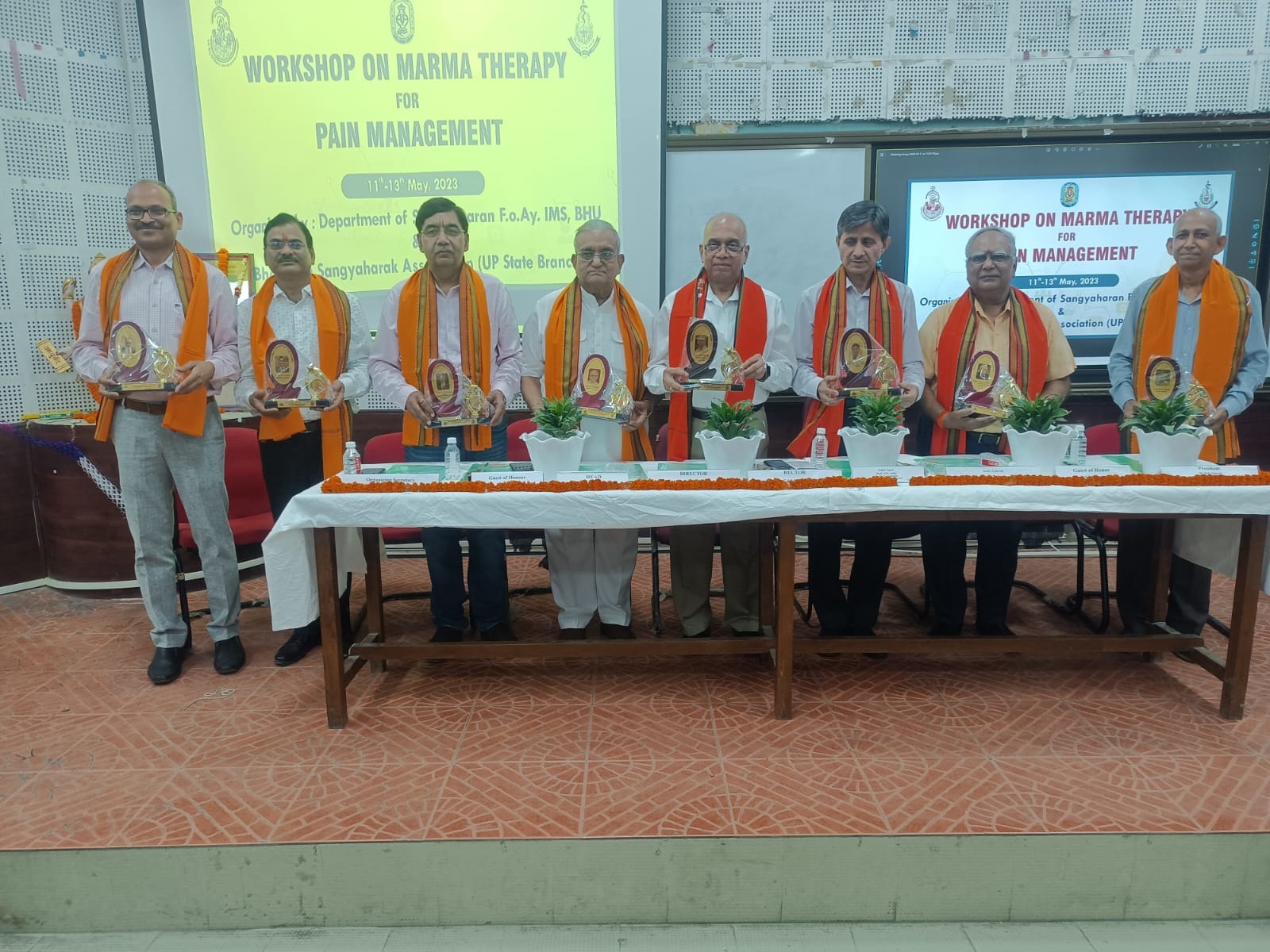 Inaugural Greeting Ceremony of “Workshop on Marma Therapy” held at Dhanwantari Hall, Faculty of Ayurveda, Institute of Medical Sciences, Banaras Hindu University, Varanasi on 11th September 2023. Distinguished Dignitary were Dr. B N Maurya, Asst. Professor, Dr. R K Jaiswal Asst. Professor, Dr. Nagendra Prasad Dubey, President, World Association of Integrated Medicine, Prof V K Shukla, Rector, Banaras Hindu University, Prof S K Joshi, Vice Chancellor, Uttarakhand Ayurveda University, Prof. K N Dwivedi, Dean Faculty of Ayurveda and Prof D N Pandey, Former HOD of Sangyaharan, Faculty of Ayurveda, IMS, BHU, Varanasi. |