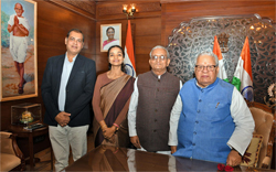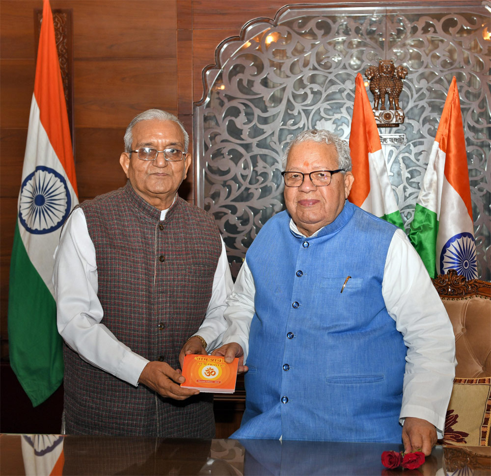 Dr. Nagendra Prasad Dubey, President, World Association of Integrated Medicine presenting Holistic Healing Booklet named “AUM Prayer” to Hon’ble H E. Kalraj Mishra, Governor, Rajasthan at Raj Bhawan, Jaipur on 5th December 2023, The presentation was accompanied by Dr. Hemant Tewari and Dr, Namika Tiwari Executive Member of World Association of Integrated Medicine. |