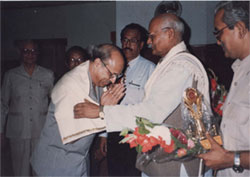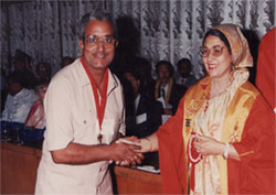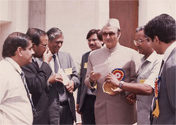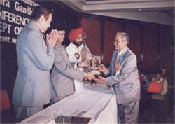 Dr. N.P. Dubey, President WAIM receiving “India Gandhi Priyadarshini Award” with Hon’ble GVG Krishnamurthy, Chief Election Commissioner of India (1997) |