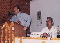 Dr. Harshvardhan, Minister of Health and Education, Got. of Delhi is Inaugurating UCIM–98 at India Medical Association, New Delhi, Dr. N. P. Dubey, Organizing Secretary is sitting on side of Dias(November-1998) |