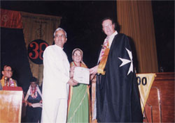 Dr. N.P. Dubey, President WAIM is honored with Gold Medal Award & Certificate at Rameshwaram (February 2000) |