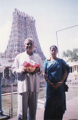 A Moment of Devotion Dr. N.P. Dubey & Mrs.Sheela Dubey in Meenakshi Temple Madurai, India (February 2000) |