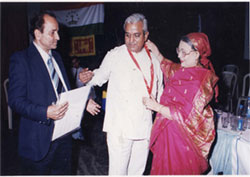 Prof. B.K.Gupta, Head of the Dept. of Medicine, GSVM Medical College Kanpur is being honored by Shri Ram Naresh Yadav, Former Chief Minister of U.P.during WCIM- 1997 |