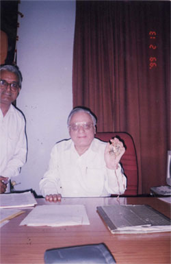 Dr. N.P.Dubey, President WAIM is seeking advise and blessings of Prof. A.N. Safaya, Director SSSIHMS Prashanti Nilayam (AP) before leaving to USA for his New Mission (July 2006) |