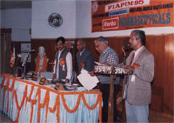 A View of Dias Arrangement (From L-R) Shri Anil Shastri; Prof.R.B. Mishra, Prof S.P.Ojha and Dr.N.P.Dubey during the Inaugural Ceremony of First International Academia on Integrated Medicine (FIAIM - 1995) |