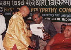H.H.T.Y.S. Lama Gangchen Rinpochhe, Conferring, Fellowship of Polypathy (FP) and Award to Dr. N.P. Dubey President WAIM at Delhi (January-1997) |