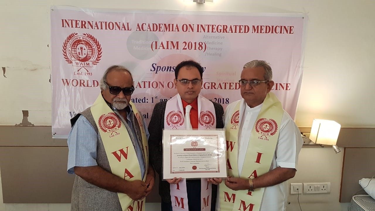 During International Academia on Integrated Medicine (IAIM) Dr. A.K.M. Fazlul Bari, Chairman, Bangladesh Institute of Thyroid Medicine and Imiging Research (BITMIR) is being granted the status of Affiliation and Bangladesh Chapter of World Association of Integrated Medicine (WAIM) from Dr. N.P. Dubey, President, Dr. D.P. Chawla, Academic Advisor, Dr. Naveen P. Dubey, Executive member of World Association of Integrated Medicine (WAIM). The program held in Delhi on1 and 2nd October 2018. |