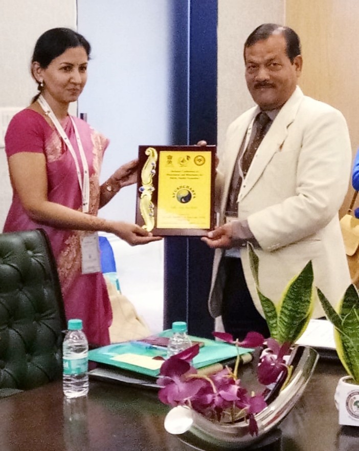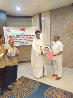 Prof. V K Agnihotri, Academic Advisor WAIM is being felicited by Prof. Divya Kajariya during National Conference held on 10 &11th December 2018 at Constitution Bhavan, New Delhi. The Conference was organized by AIIA & Ministry of AYUSH, Govt. of India |