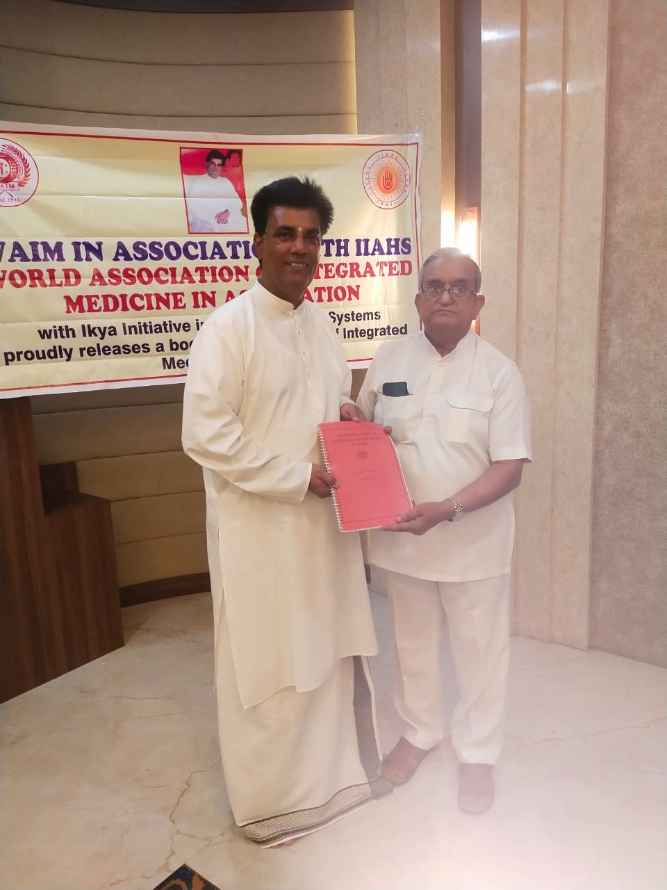 Prof. A V Sriniwasan Ji is being greetd by Dr. N P Dubey, President, World Association of Integrated Medicine on 8th October 2021 at Varanasi in a Ceremony organised by Rotary Club. During the function a book on "Introduction of Integrated Medicine in India" was released. Besides Prof. A. V. Sriniwasan, Shri Amar Agarwal, Executive Member and Shri Piyush Agarwal, President, Rotary Club.